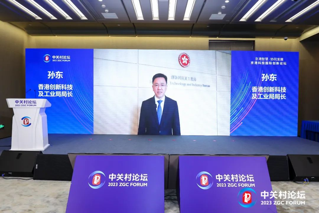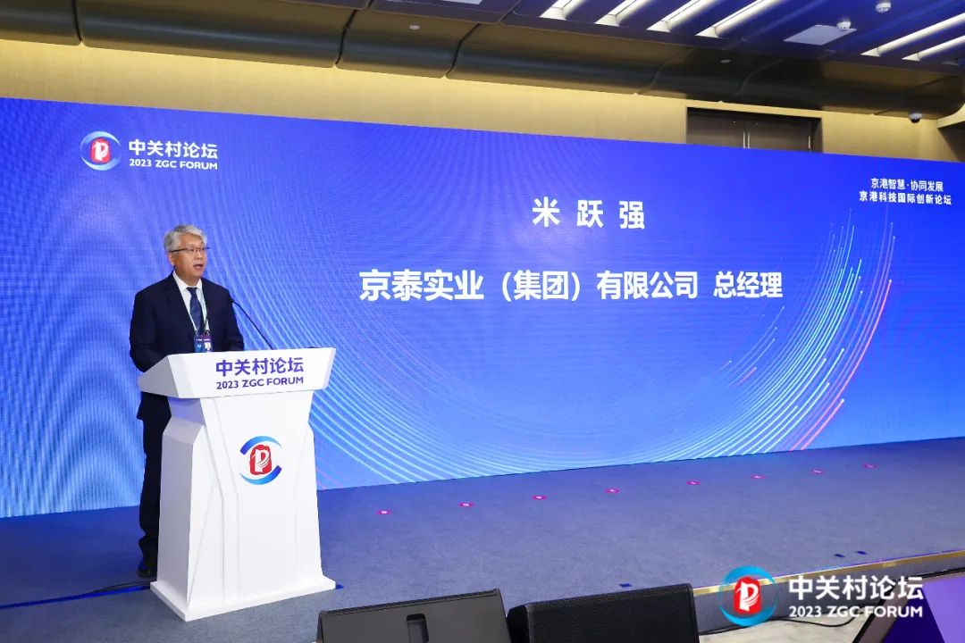 北京市科委、中关村管委会副主任张宇蕾女士、香港创新科技及工业局局长孙东先生、香港贸易开展局中国内地总代表钟永喜先生、京泰实业集团总经理米跃强先生出席活动并致辞。
